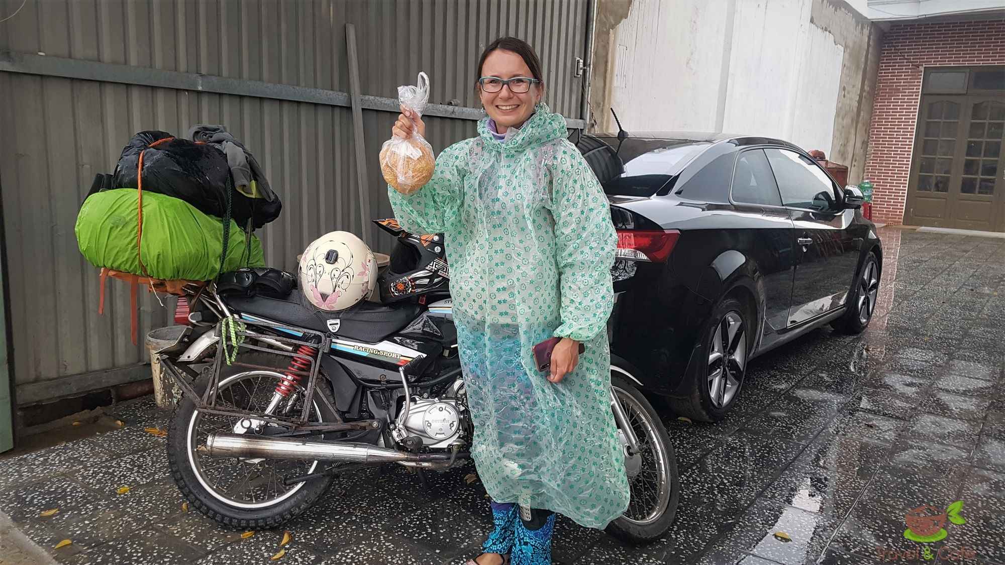 Po przejechaniu kilkunastu kilometrów zaczyna padać a po chwili lać. Zatrzymujemy się i czekamy. Wyciągam pelerynę. W strugach deszczu biegnę po bánh tiêu (słodkie bułeczki z sezamem) do schowanej pod dużym parasolem uśmiechniętej Wietnamki nie zrażonej ulewą. Siadamy w kawiarni Milano i popijając wietnamską Cà Phê Đà czekamy aż przestanie lać. Na ulicy strugi wody spływają obficie tworząc prawie powódź. Po ponad dwóch godzinach wypogadza się, ulice w mgnieniu oka schną i nie ma śladu po ulewie. Wskakujemy na Asjatkę i ciśniemy do Đà Lạt. Niewiele pamiętam z tej drogi. Cały czas śpiewałam mantrę ochronną Aad Guray Nameh. Mantrę, która chroni i przyciąga wsparcie, pozytywnych i pomocnych ludzi. Chyba już podświadomie czułam, że tego właśnie w tym czasie będziemy potrzebować.