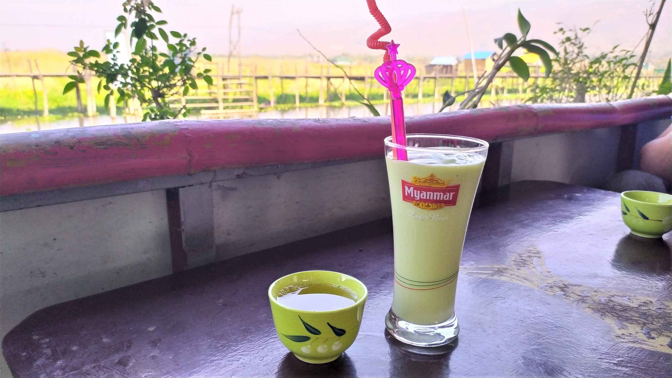 Po rejsie decydujemy się na sok z awokado w Shwe Yee Win Floating Restaurant. Aby jednak dostać się do restauracji najpierw trzeba do niej dopłynąć. Czekamy więc przy pomoście na transport. Po chwili podpływa mężczyzna i już kilka minut później siedzimy przy niskim stoliku i patrzymy na most, łódki i położone nieopodal wzgórze. A co tam. Relaksujmy się!