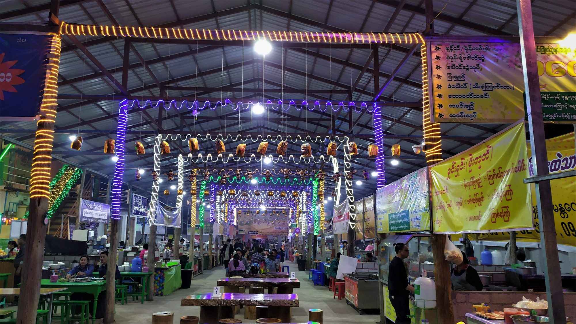 Kolorowy DHK Night Market and Food Court w Pyin Oo Lwin