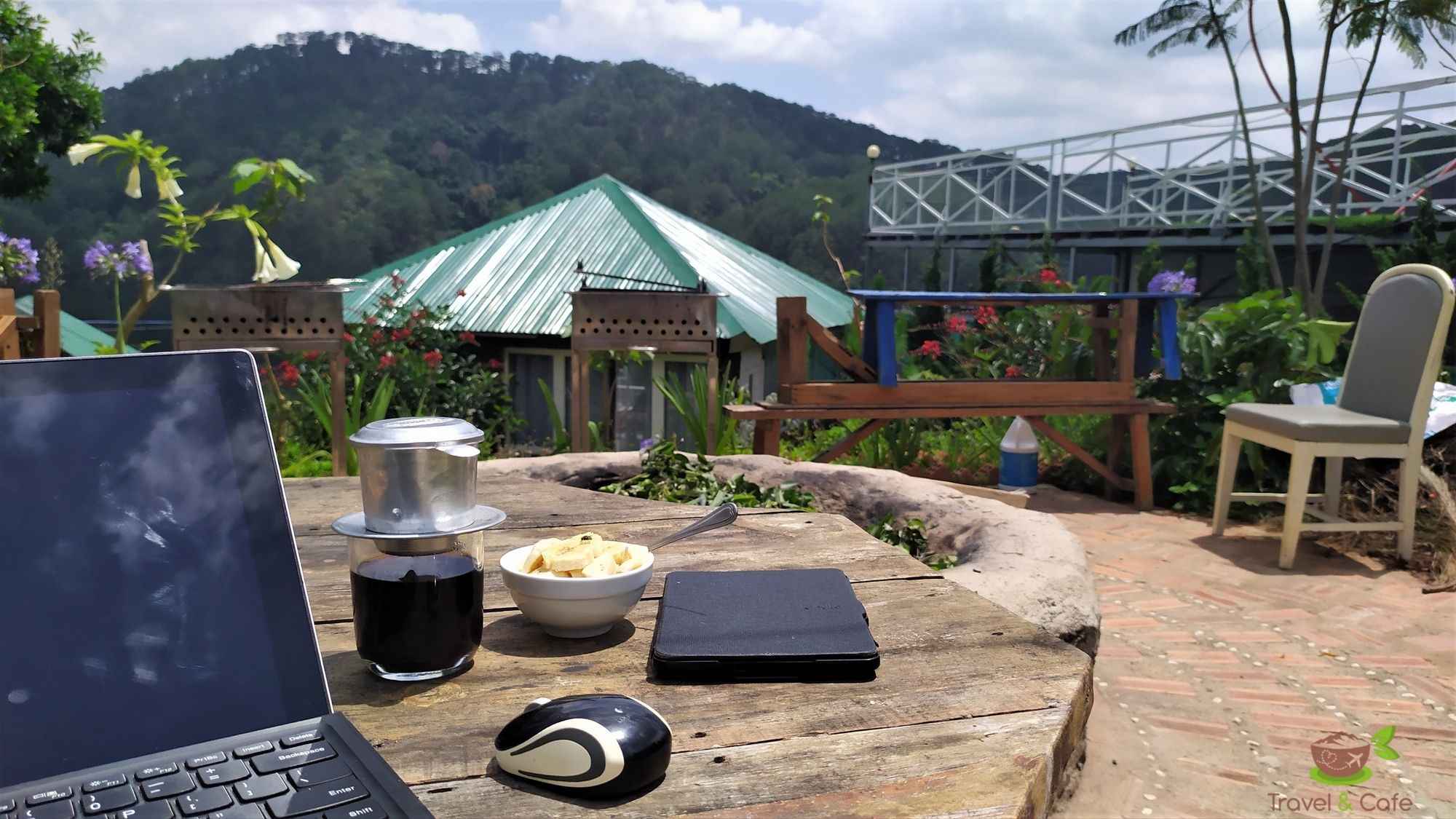 Jesteśmy w Đà Lạt. Odkryłam to „COŚ” co wisi w powietrzu. Teraz trzeba zadbać o swoją wewnętrzną równowagę i znaleźć swój tymczasowy „dom”. Ale gdzie? W Hoang Gia Trang, The Rustic Garden! To miejsce, to nie przypadek! Po raz kolejny się o tym przekonaliśmy kiedy poznaliśmy właścicieli. Właścicielka Haa z uśmiechem otwarła nam bramę zapraszając do środka. Rozgościliśmy się bardzo szybko w naszym nowym „domu”, chociaż jeszcze tego nie wiedzieliśmy w momencie przybycia. Zaplanowaliśmy pobyt w tym miejscu na tydzień dzieląc czas na pracę i zwiedzanie okolicy. Dostaliśmy przepiękny apartament z widokiem na góry i ogród. W pokoju było wystarczająco dużo miejsca abym mogła rozłożyć matę do jogi i wrócić do codziennej praktyki. Od samego początku skoncentrowaliśmy się mocno na porannych praktykach, które stały się nieodłączną częścią dnia podczas całego pobytu w Đà Lạt. Wizyta w centrum miasta i wiszący w powietrzu strach miał, szczególnie na początku, niemały wpływ na nasze samopoczucie i emocje. I mimo, iż staramy się omijać to wahadło, to jednak gdzieś zawsze coś nas musnęło. I to właśnie The Rustic Garden dało nam przestrzeń aby przez całą dobę być wśród natury, drzew, kwiatów i ptaków, aby budzić się i zasypiać przy akompaniamencie świerszczy. To miejsce pełne harmonii, pozytywnej energii, stworzone z miłością i pasją. Tutaj czujemy się jak w domu. Kiedy okazało się, że przemieszczanie się po Wietnamie zostało bardzo ograniczone, bez wahania zdecydowaliśmy, że zostajemy w Rustic Garden tak długo, jak to będzie konieczne. Dzisiaj mija 5 tygodni od momentu naszego przybycia do Đà Lạt. Wciąż tu jesteśmy. Patrzę na zielone wzgórze, słucham śpiewu ptaków i uśmiecham się do siebie bo wiem, że to jest najlepsze miejsce, w którym w tym szczególnym momencie mogliśmy się znaleźć. Nic nie dzieje się przypadkiem.