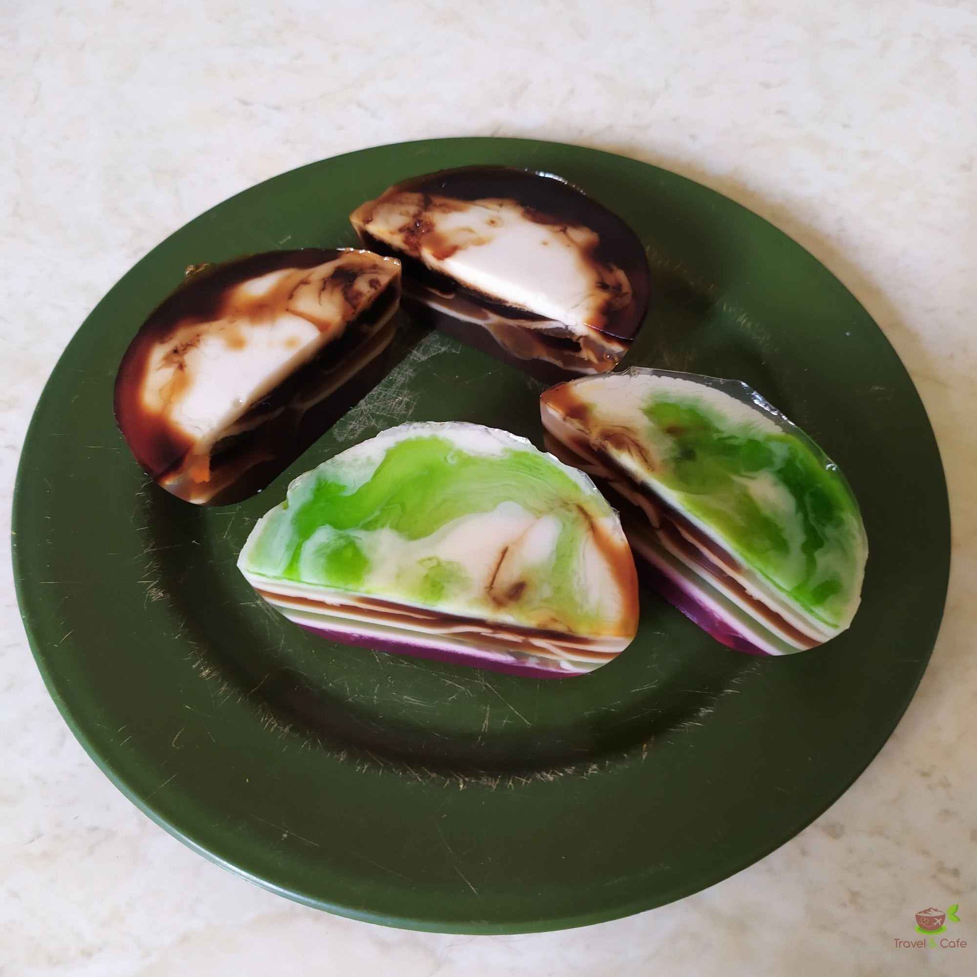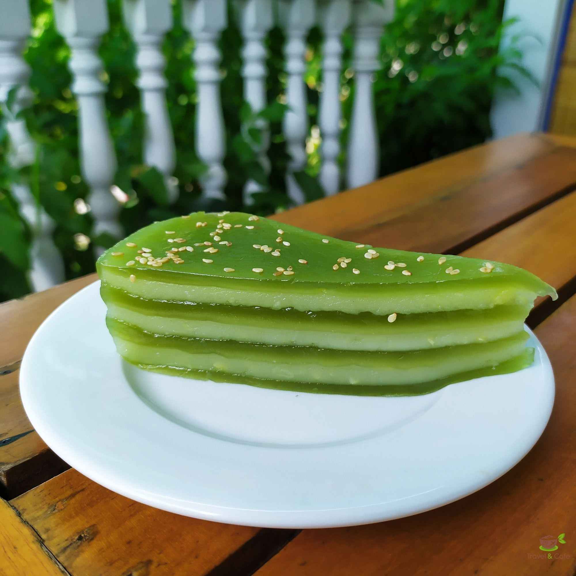 Kolorowy, warstwowy tort wietnamski gotowany na parze o zastanawiającej nazwie "Tort ze skóry wieprzowej"