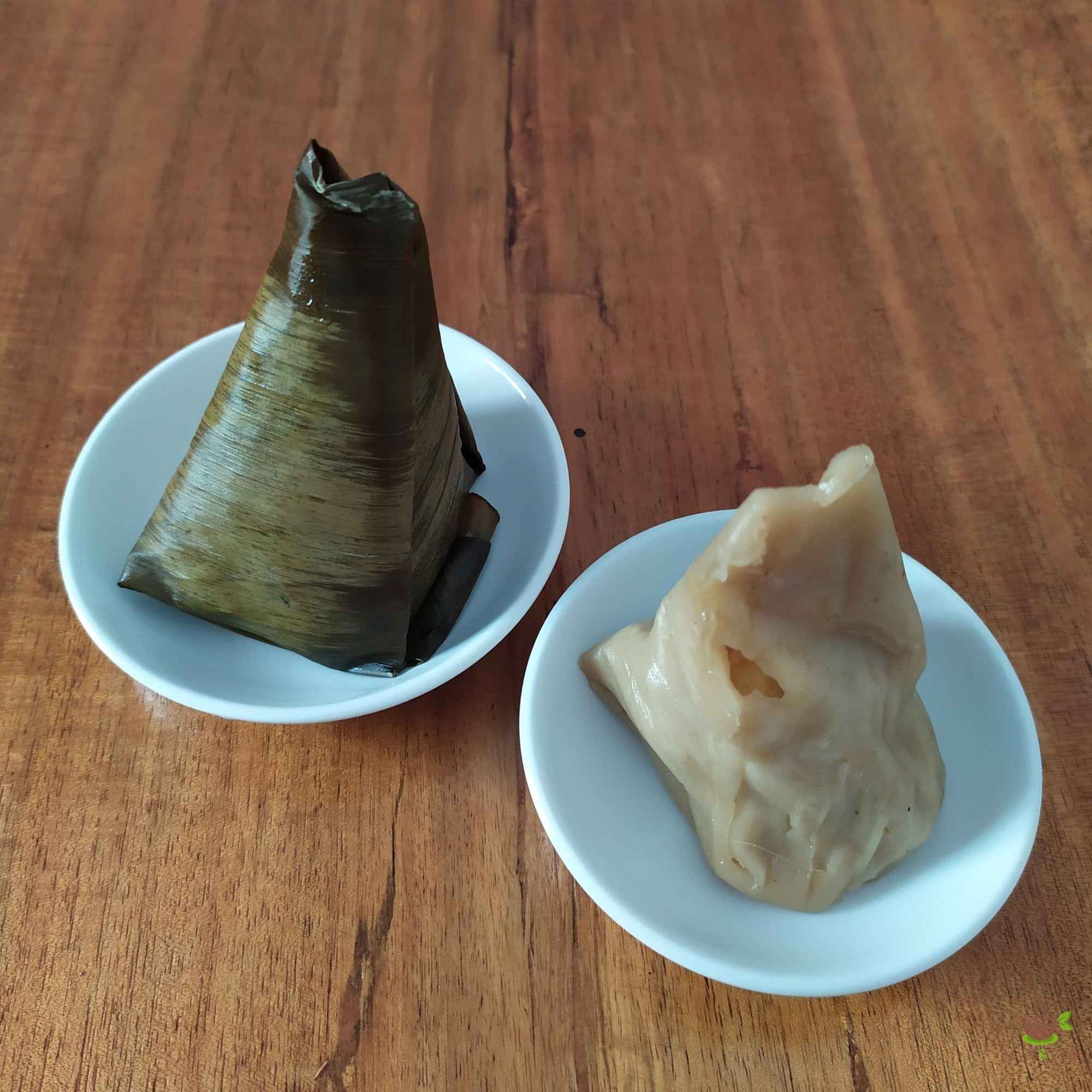Ta wersja została nabyta u tej samej pani z rowerkiem. Tym razem z brązowym kleistym ryżem z dodatkiem czarnej fasoli. Oznacza to, iż składniki mogą ulec zmianie, chociaż nie jest to często spotykane. Panie zazwyczaj są wierne swoim unikalnym wyrobom i codziennie oferują swoje specjalności w tej samej wersji, a ich wierni klienci wiedzą po co dokładnie przychodzą.