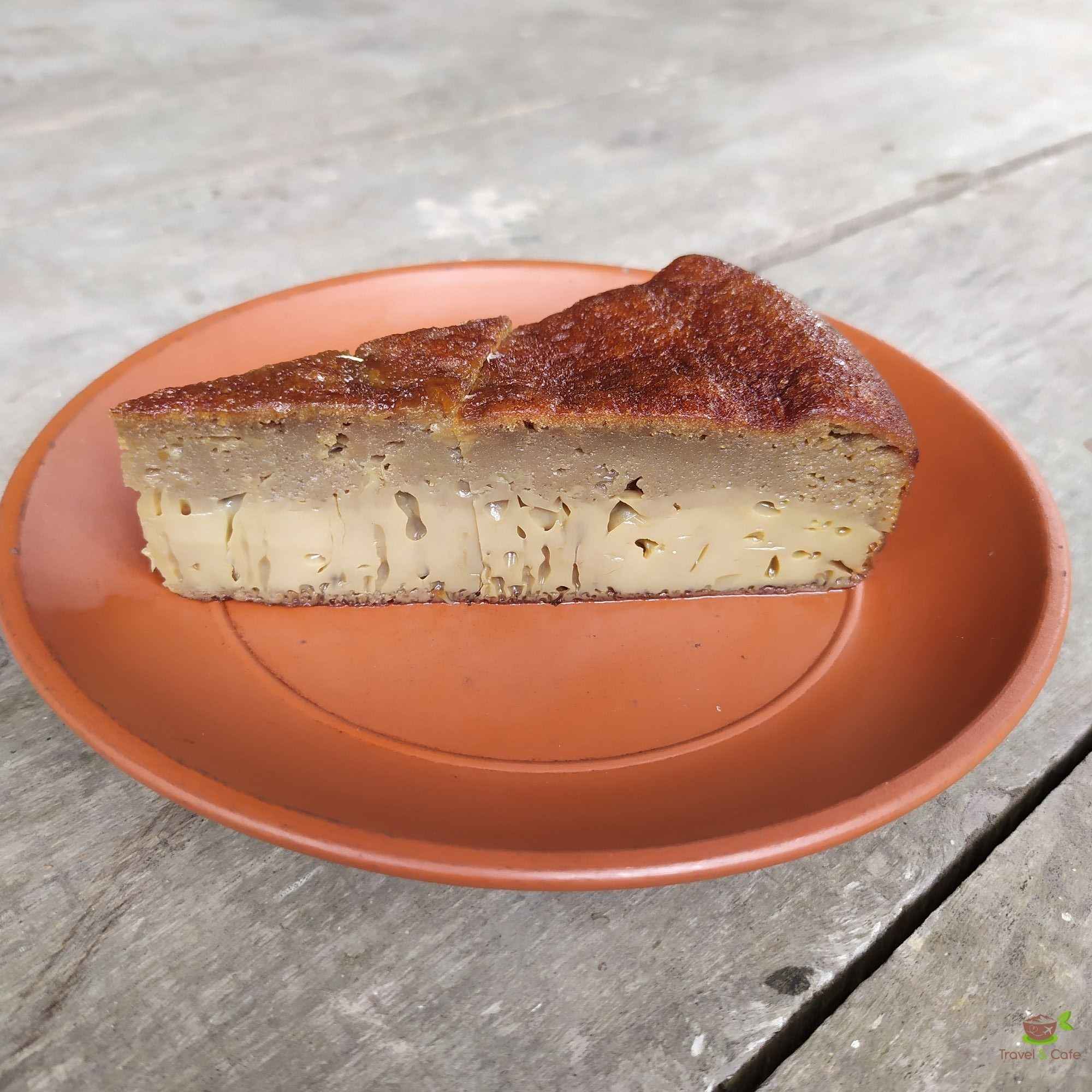 Bánh gan w dosłownym tłumaczeniu oznacza "Ciasto wątrobowe". Skąd ta nazwa? Podobno wyglądem i kolorem przypomina wątróbkę. Chociaż ja osobiście, ze względu na konsystencję i kolor, skojarzyłam to ciasto z budyniem. Cechą charakterystyczną bánh gan jest to, że nie zawiera mąki. Składa się z dużej ilości kaczych jaj, wiórków kokosowych, cukru pudru, anyżu i oleju. Ciasto ma specyficzny, tłusty i lekko rybny smak. Aby ciasto zachowało swój specyficzny smak i naturalną gładkość do jego pieczenia stosuje się jaja kacze zamiast kurzych. Najwięcej odmian tego ciasta widzieliśmy na jednej z ulic w Long Xuyên.