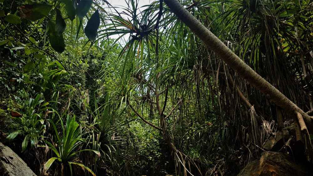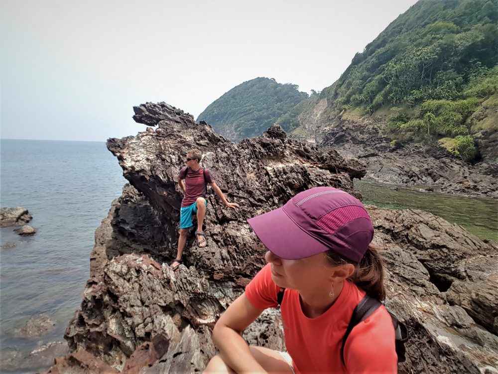 Kiedy w końcu nasze pośladki miały dość przebywania w pozycji horyzontalnej a kość ogonowa przypomniała o swoim istnieniu zdecydowaliśmy się przejść do pozycji wertykalnej udając się na trekking w dżungli. Szerokość wyspy to aż 1 km więc trzeba się przygotować. Spakowani jak na prawdziwą wyprawę ruszamy w głąb lasu tropikalnego. Jakie było nasze zdziwienie kiedy okazało się, że ścieżka jest tak poprowadzona, że wiedzie w górę, w dół, w prawo, w górę, w dół w lewo i tak kilka razy, że zeszło z 2,5 godziny zanim stanęliśmy w punkcie widokowym od strony Captain Long House. Trasa przyjemna i łatwa. Brakowało nam tylko odgłosów dobiegających z lasu wydawanych przez różne ptaki, które słyszeliśmy podczas naszych poprzednich wypadów do dżungli.