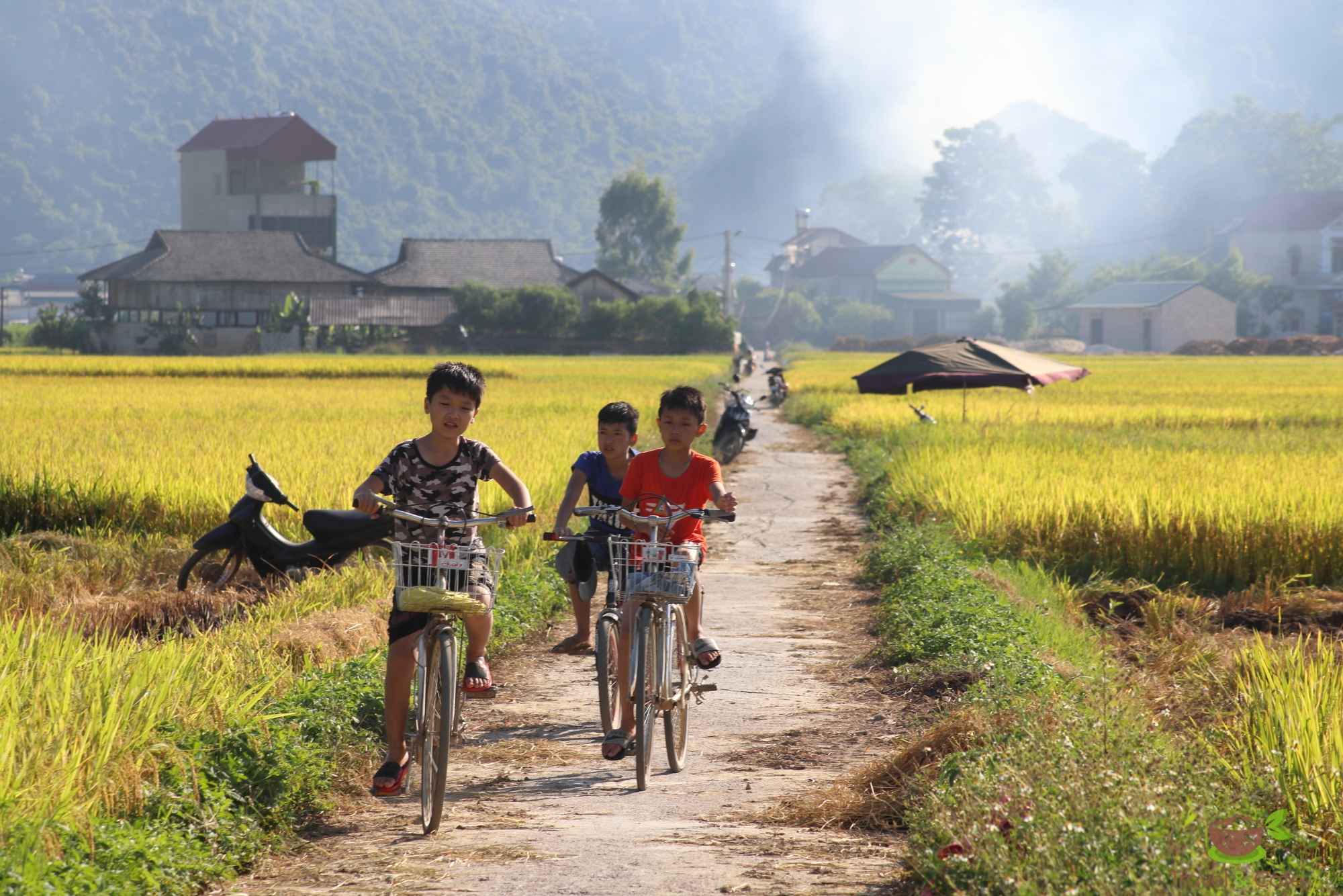 • Hai Yen - Lang Son – odcinek przez góry, wioski, pomiędzy polami ryżowymi, ładny ale męczący, wyboista droga pełna kamieni.