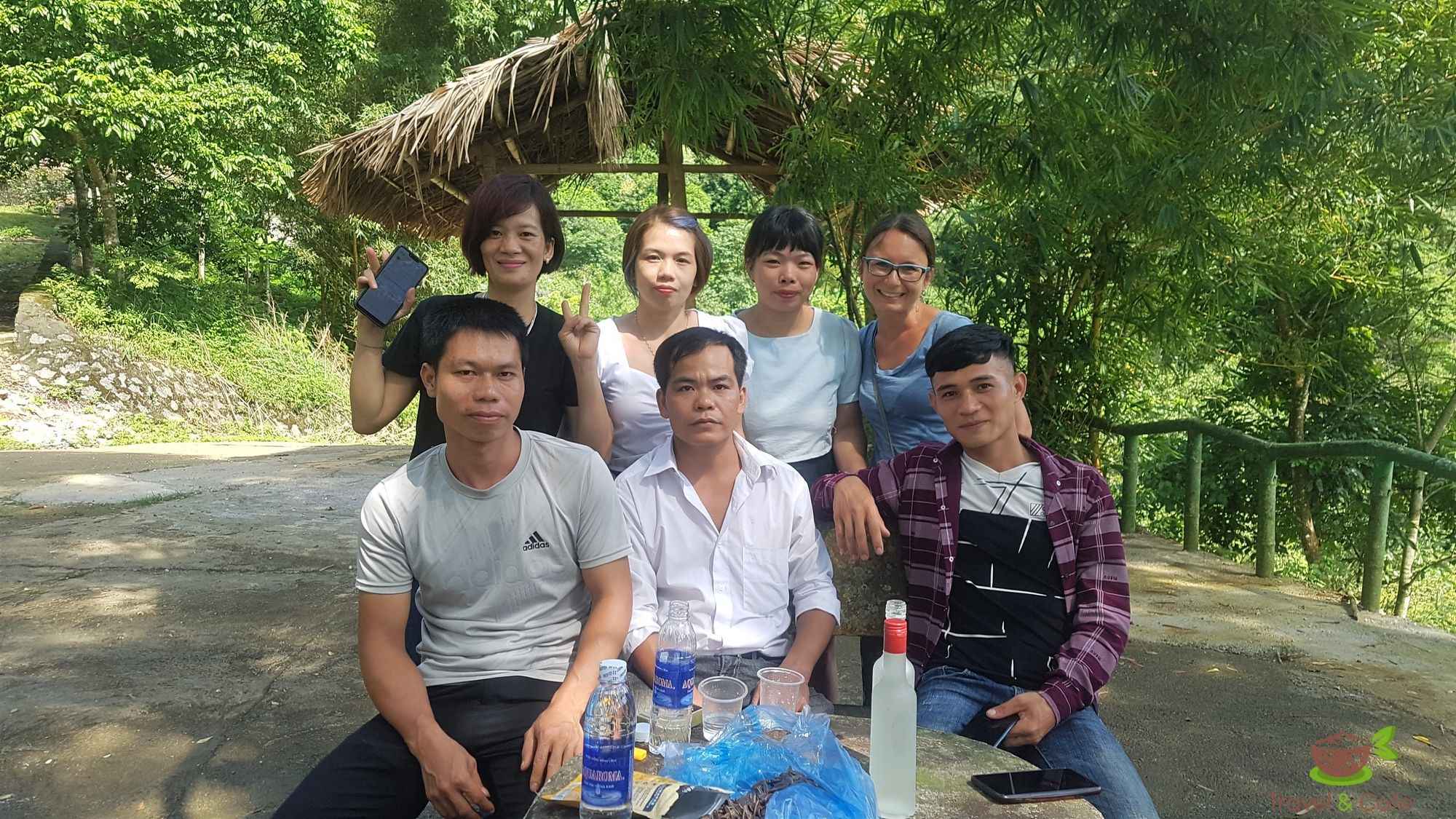Kiedy po dwóch godzinach postanawiamy ruszyć do drugiego punktu (z powodu niepewnej pogody już zrezygnowaliśmy z robienia pętli) spotykamy sześcioosobową grupę Wietnamczyków. Widzę nalewkę. Już nam machają i zapraszają. Minąć się ich nie da, ot tak ;) Podchodzimy, „hello”, „xin chao”, i już mamy kubek z ruoi pod nosem. "Do dna"... Dzień bez kawy, cukru i alkoholu (wszystkie 3 warunki jednocześnie) wydaje się być niemożliwy do zrealizowania w północnym Wietnamie. Bo kiedy już decyduję się na kawowy i cukrowy detoks to ni stąd ni z owąd pojawiają się zaproszenia „na jednego”. Nieznajomość języka angielskiego nikomu nie przeszkadza. Tłumacz Google sprawdza się niezawodnie. Obowiązkowo jest też sesja zdjęciowa, po której dziękujemy za zaproszenie i miłe chwile i ulatniamy się bo przed nad jeszcze jeden cud natury…