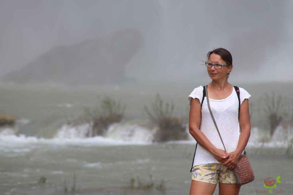 Nad wodospadem można zjeść coś grillowanego, nie brakuje również sklepów z pamiątkami i kawiarni, a wzdłuż ścieżki prowadzącej nad wodospad można kupić pieczone kasztany. Wróciły wspomnienia o bratysławskich kasztanach sprzedawanych na Hlavnom Namesti albo Trnavskom Myte ;). Kupujemy więc porcję i dajemy się pochłonąć żywiołowi wody... Siedząc na ławeczce pod drzewem czuję jak przy każdym podmuchu wiatru, krople wody osiadają na mojej skórze i okularach. Szum wody sprawia, że tracimy poczucie czasu. Wokół nas na matach rozkładają się Wietnamczycy. To znak, że nadeszła pora lunchu.
